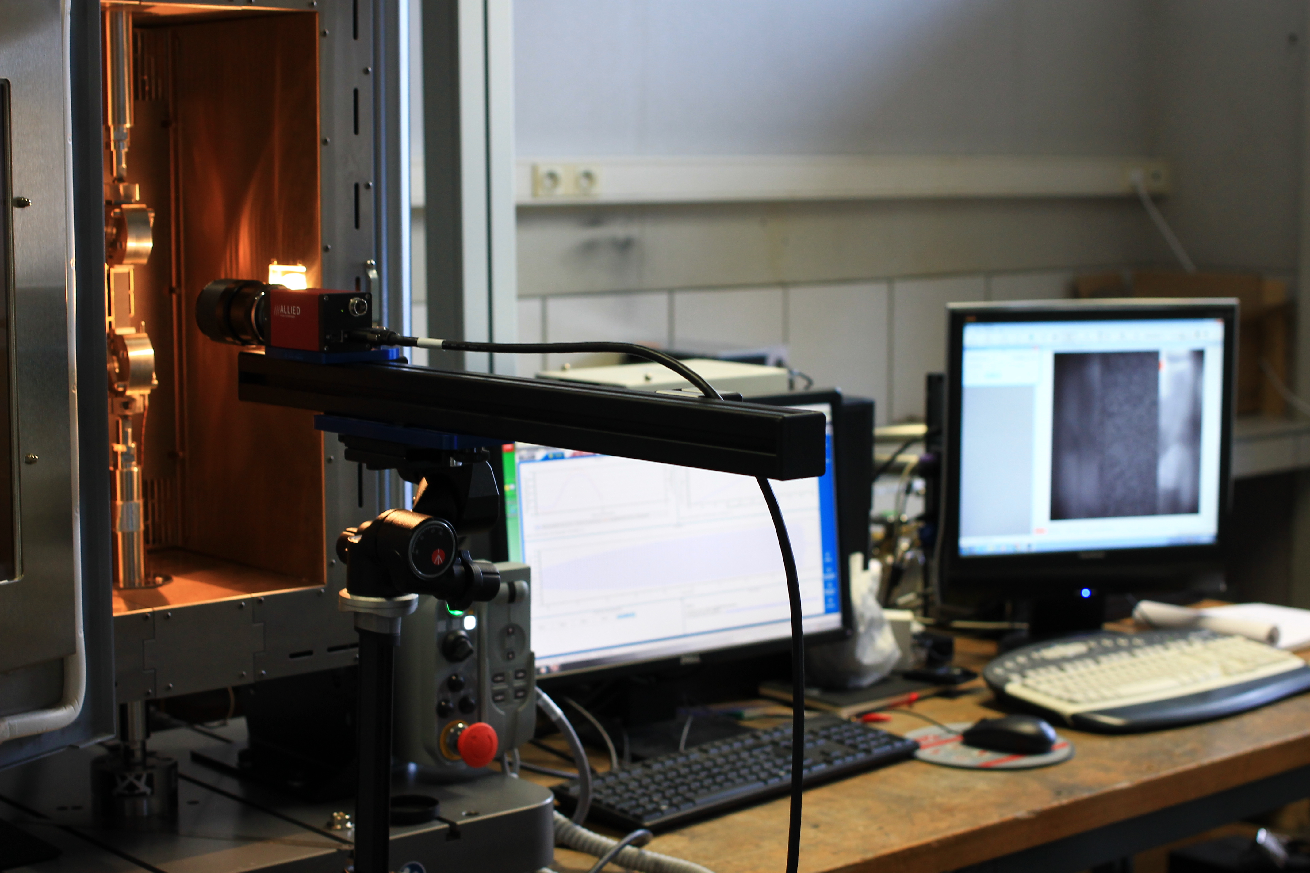 E3000 electropulse Instron device equipped with digital image correlation technique to capture strain maps, during testing |