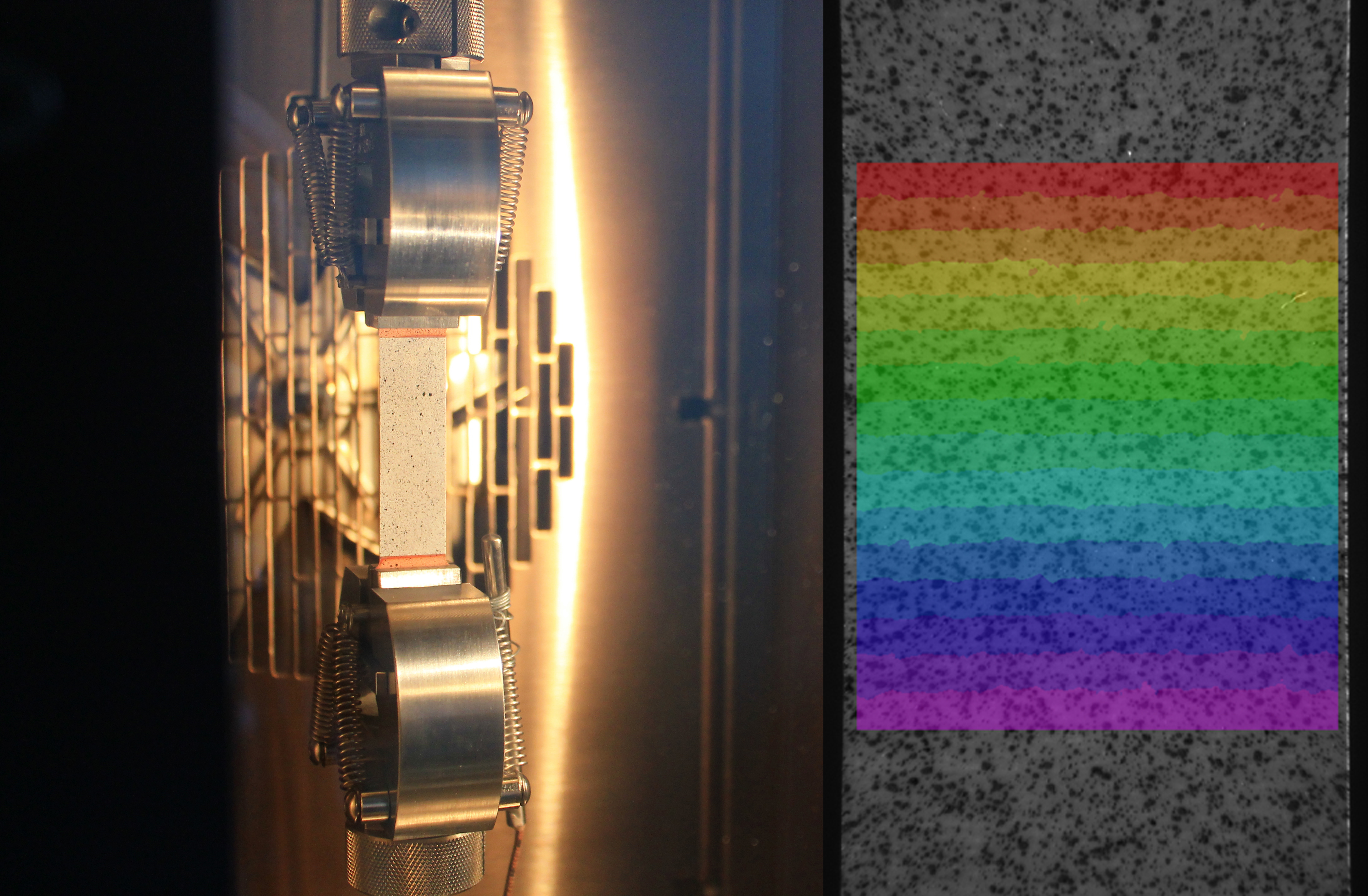 E3000 electropulse Instron device equipped with digital image correlation technique to capture strain maps, during testing